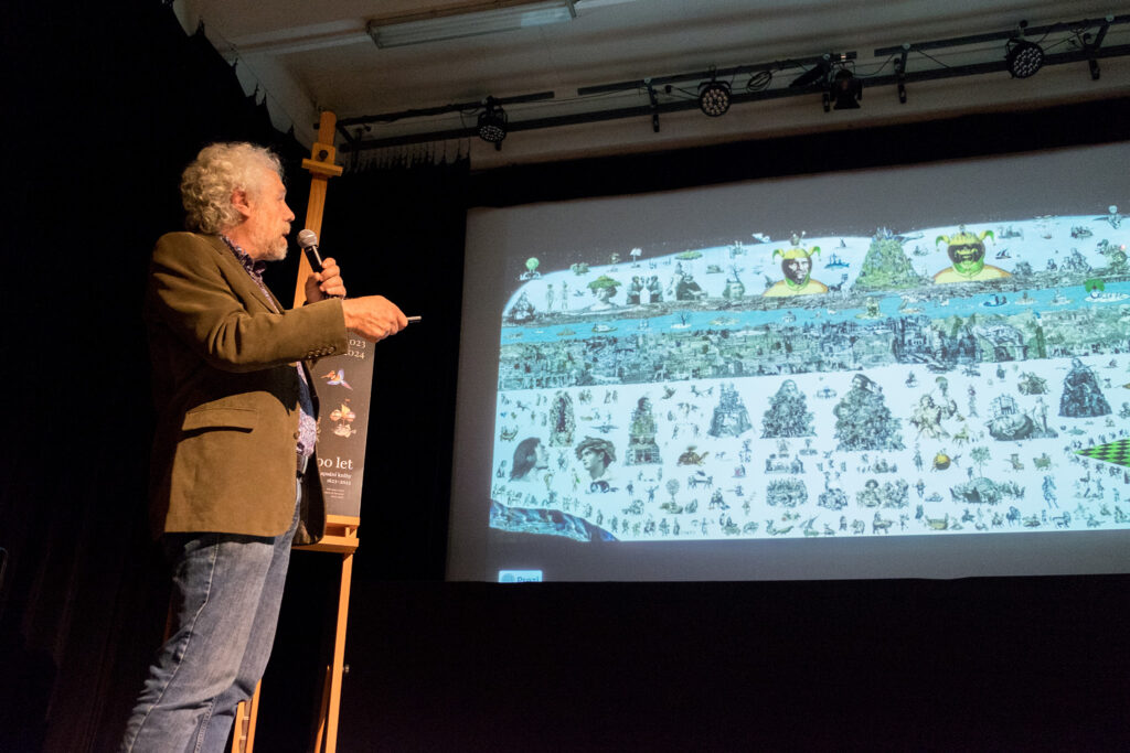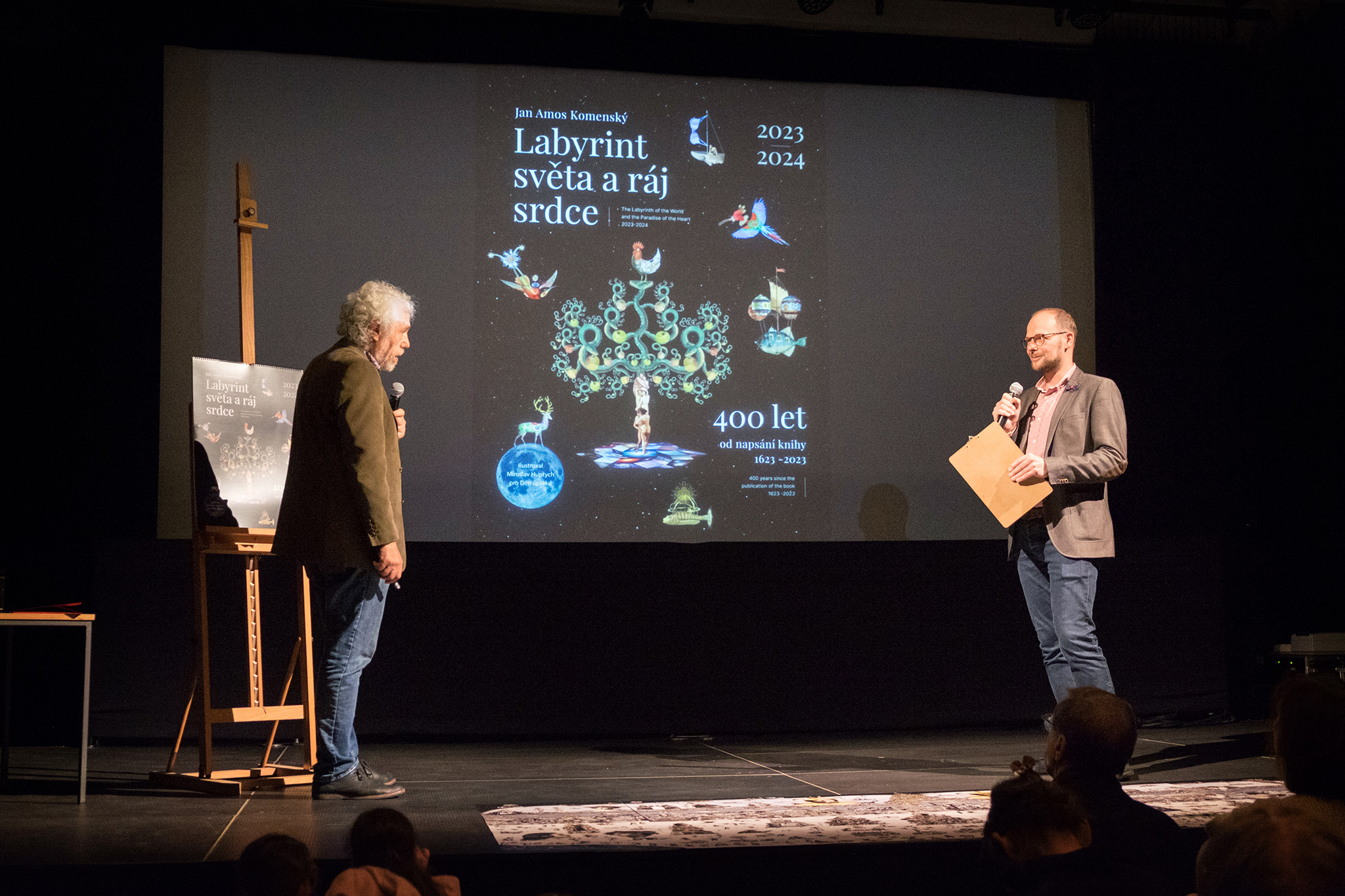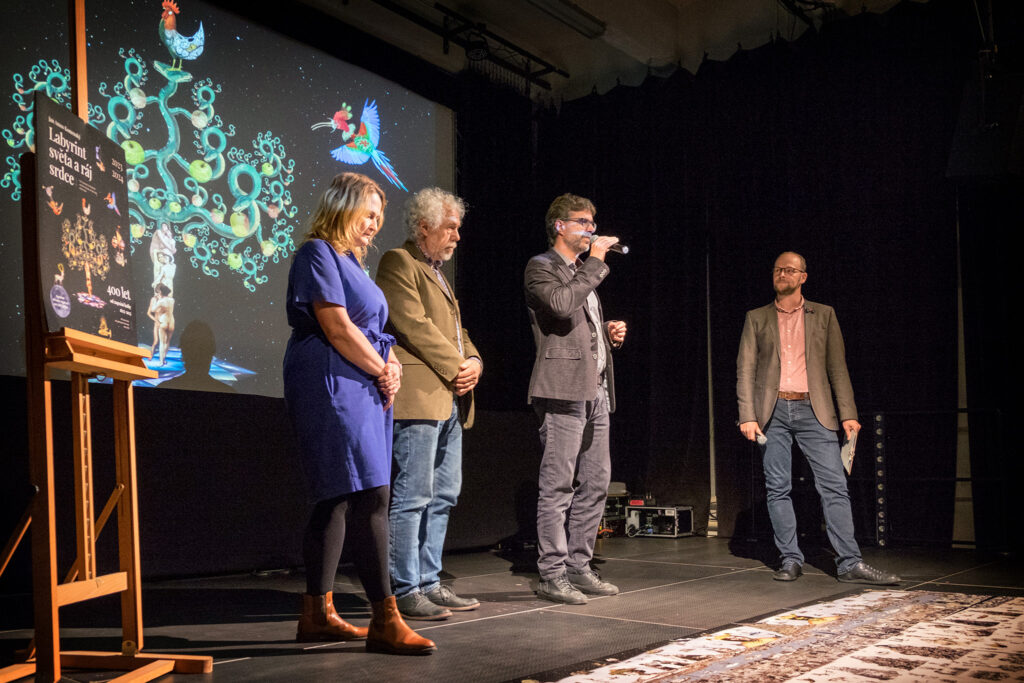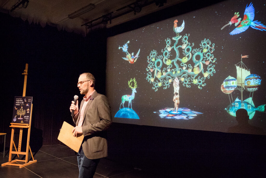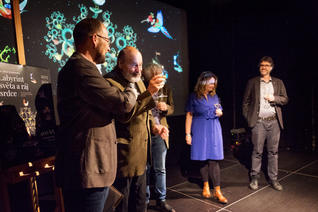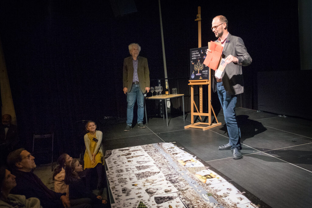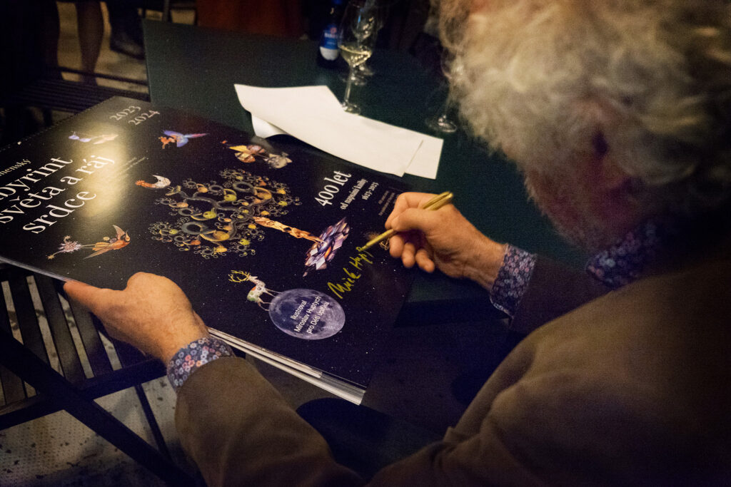 Ve středu 5. 10. se uskutečnil křest uměleckého charitativního kalendáře Labyrint světa a ráj srdce. Autor Mirek Huptych všechny přítomné zasvětil do tajů fantazijních koláží zvířat a výjevů. Kalendář pokřtili herečka Martha Issová a kněz Tomáš Halík. Děkujeme.